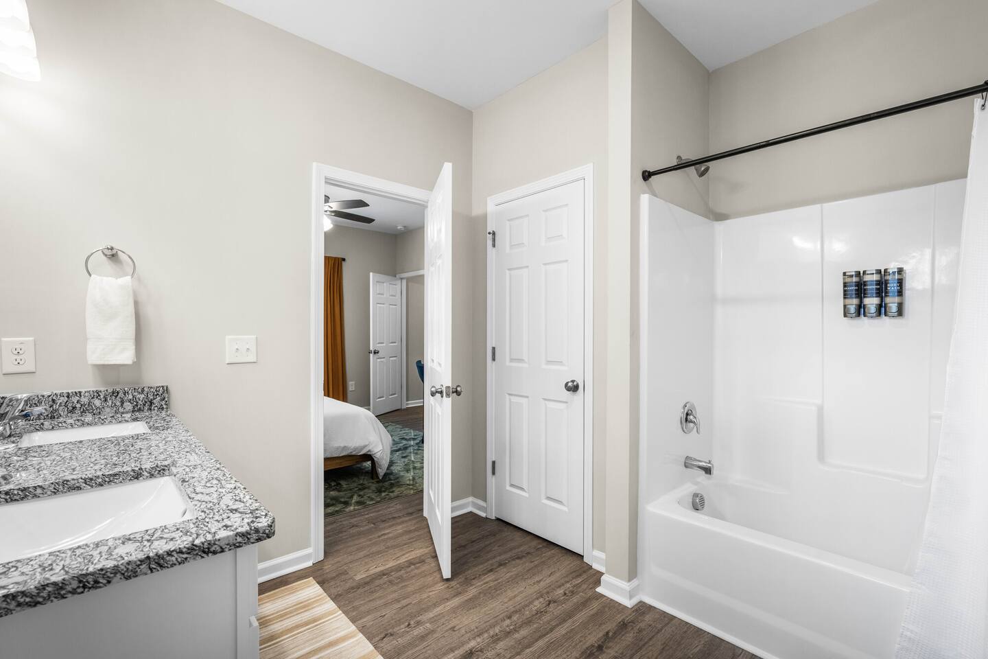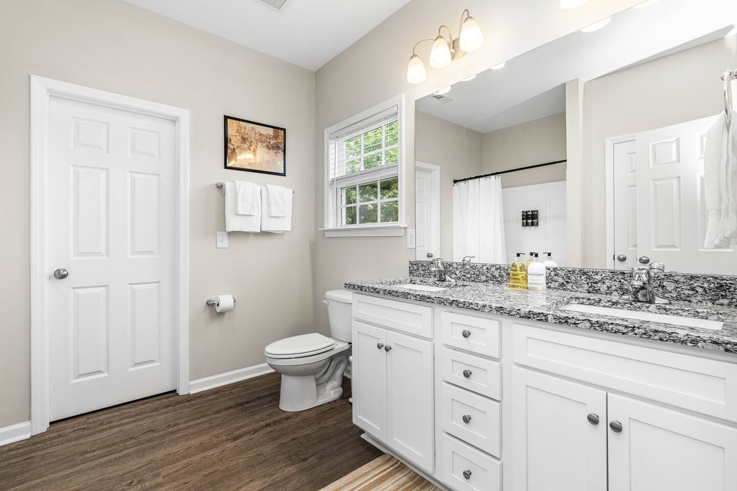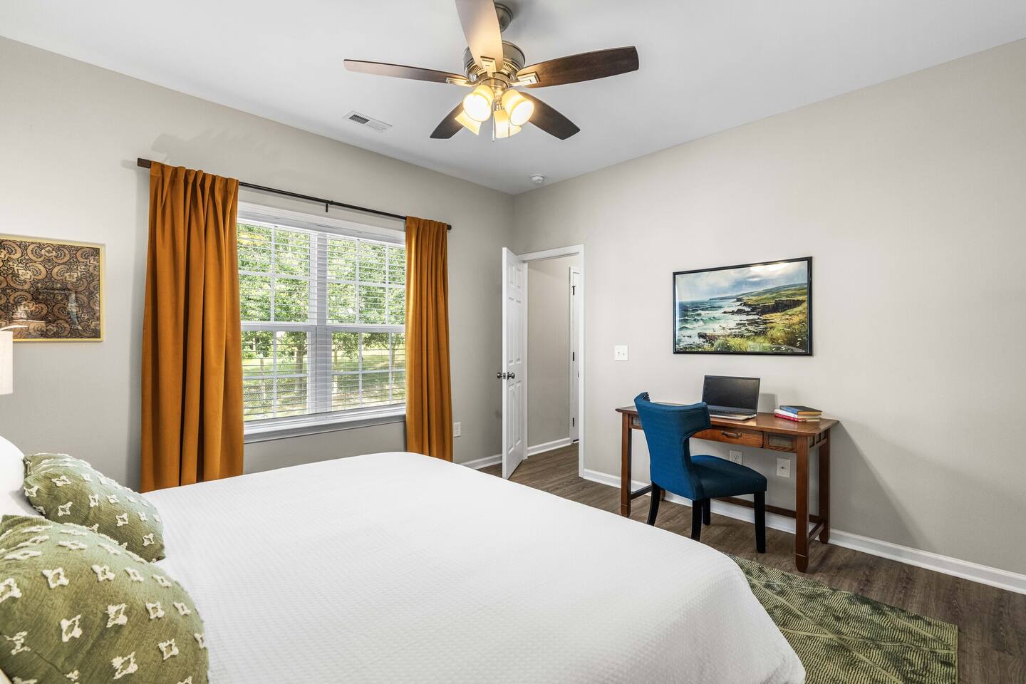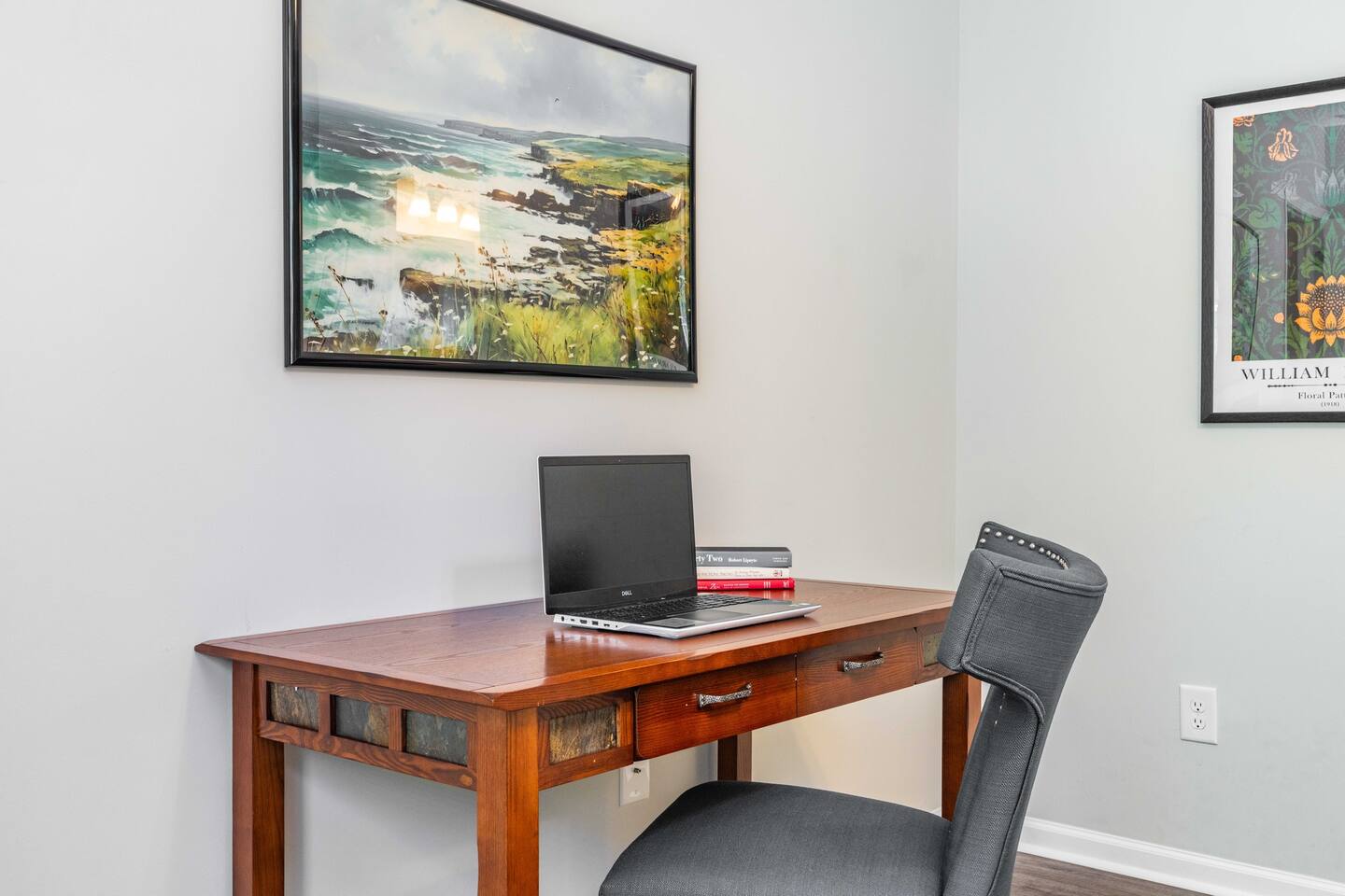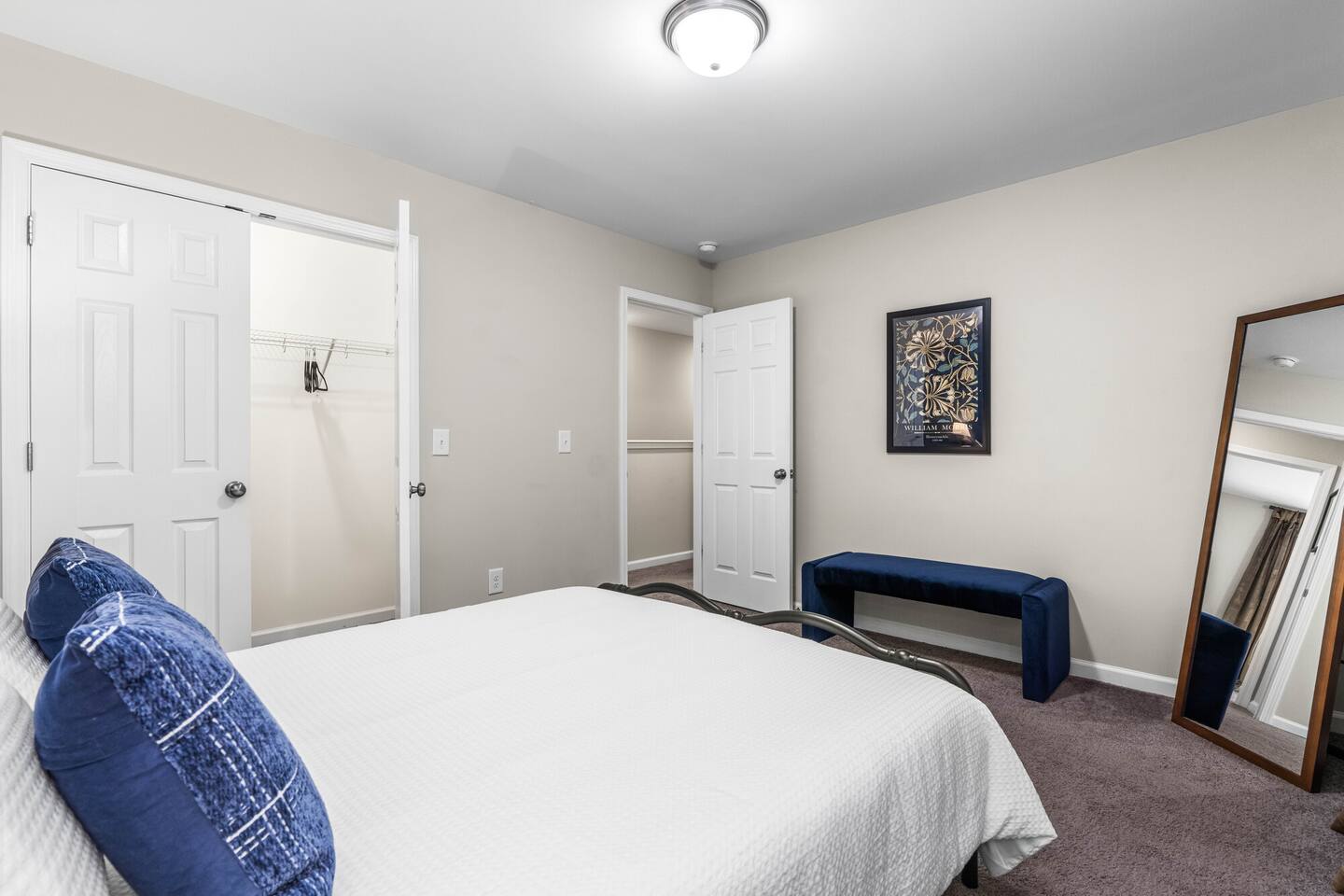 Upstairs, unwind in five comfortable bedrooms: Primary Suite: King bed + workspace + ensuite bath with tub Bedrooms 2 & 3: Queen beds Bedrooms 4: 2x Queen beds Bedroom 5: Full under Twin bunkbed — ideal for kids or extra guests Every bed is outfitted with premium linens and hotel-grade comfort. 🌿 Outdoor Spaces Step onto your balcony deck to grill, dine, or relax with treetop views. In the fenced backyard, enjoy cornhole and lawn games under the lights — the perfect end to a day in Durham. 💻 Tech & Amenities ✔ FAST Wi-Fi for work or streaming ✔ Smart TVs in living area and primary bedroom ✔ Yale smart lock for easy self check-in ✔ Central A/C & heating ✔ BBQ grill & outdoor dining set ✔ Washer & dryer in unit 🌇 Location Highlights Prime central location — walk or drive to Durham’s best: 🚶♂️ Ninth Street District (1.5 mi) – shops, cafés & local vibe 🎭 DPAC (1 mi) – Broadway & concerts ⚾ Durham Bulls Ballpark (0.8 mi) 🎓 Duke University & Gardens (1.3 mi) 🍽️ Downtown restaurants & breweries (< 10 min) Quiet neighborhood + quick access = the best of both worlds. 💬 Guest Favorites “The space was immaculate and huge — perfect for our family visit to Duke.” “Loved the BBQ deck and backyard games after a day downtown.” “Super easy check-in and amazing communication from the host.” 🔑 Guest Access Guests have exclusive use of the entire home, patio, and backyard. Entry via smart lock self check-in. Free parking in driveway and on street. 🧹 Other Things to Note Professionally cleaned between each stay for hotel-quality freshness. No parties or smoking. 💼 Ideal For ✅ Duke families & medical professionals ✅ Corporate relocations or traveling teams ✅ Wedding groups & extended family stays ✅ Long weekend getaways & durations up to 30 days
