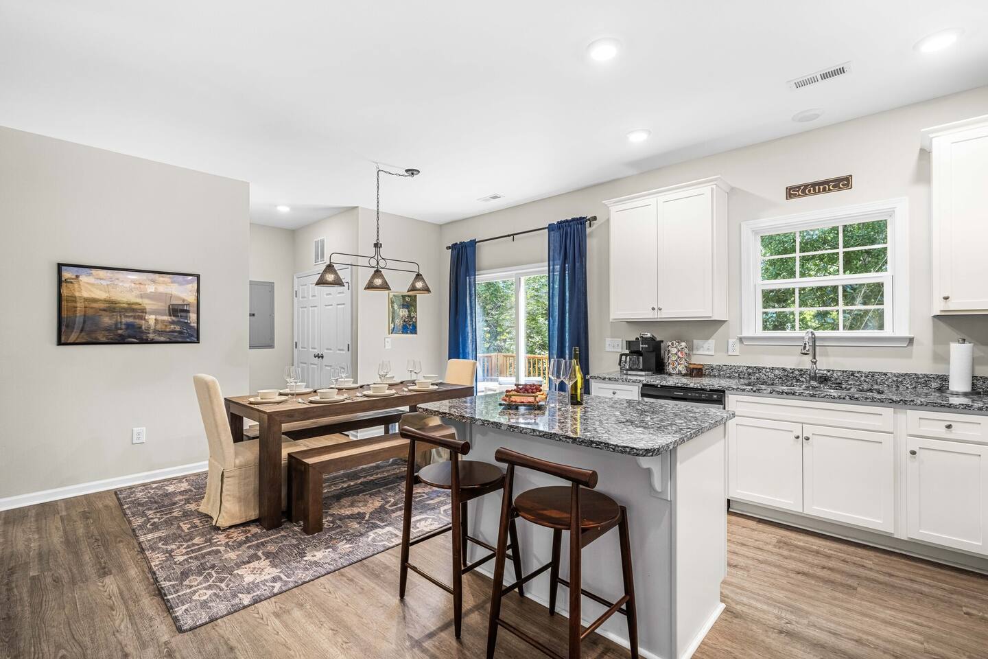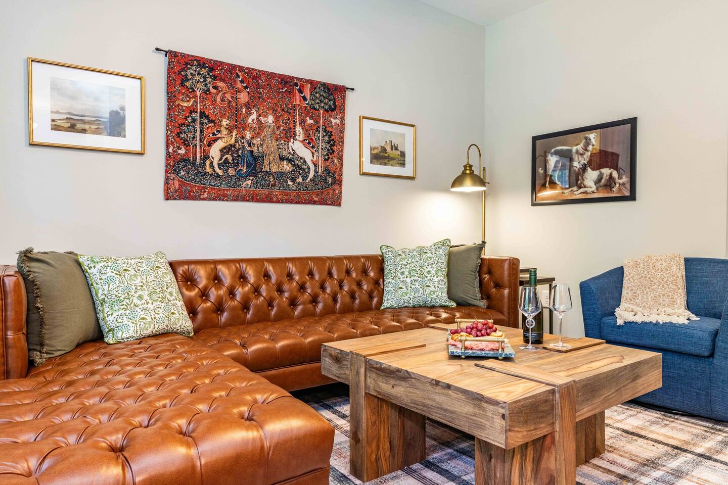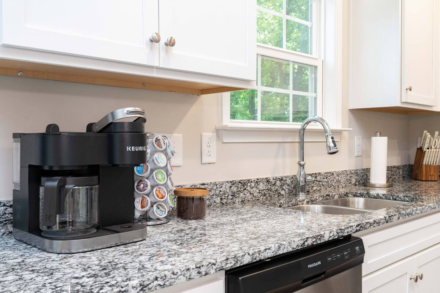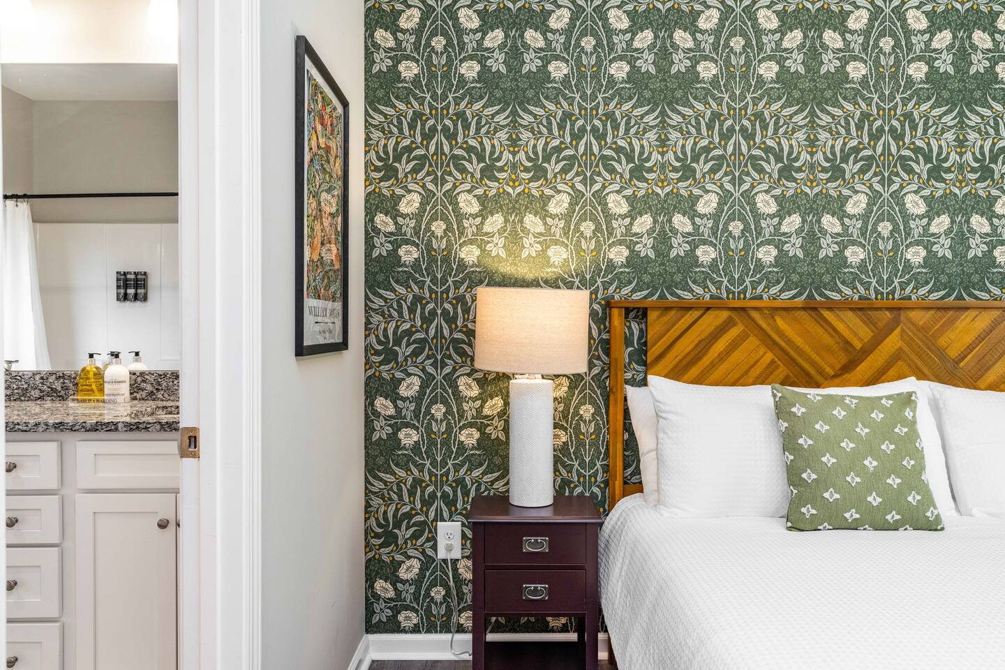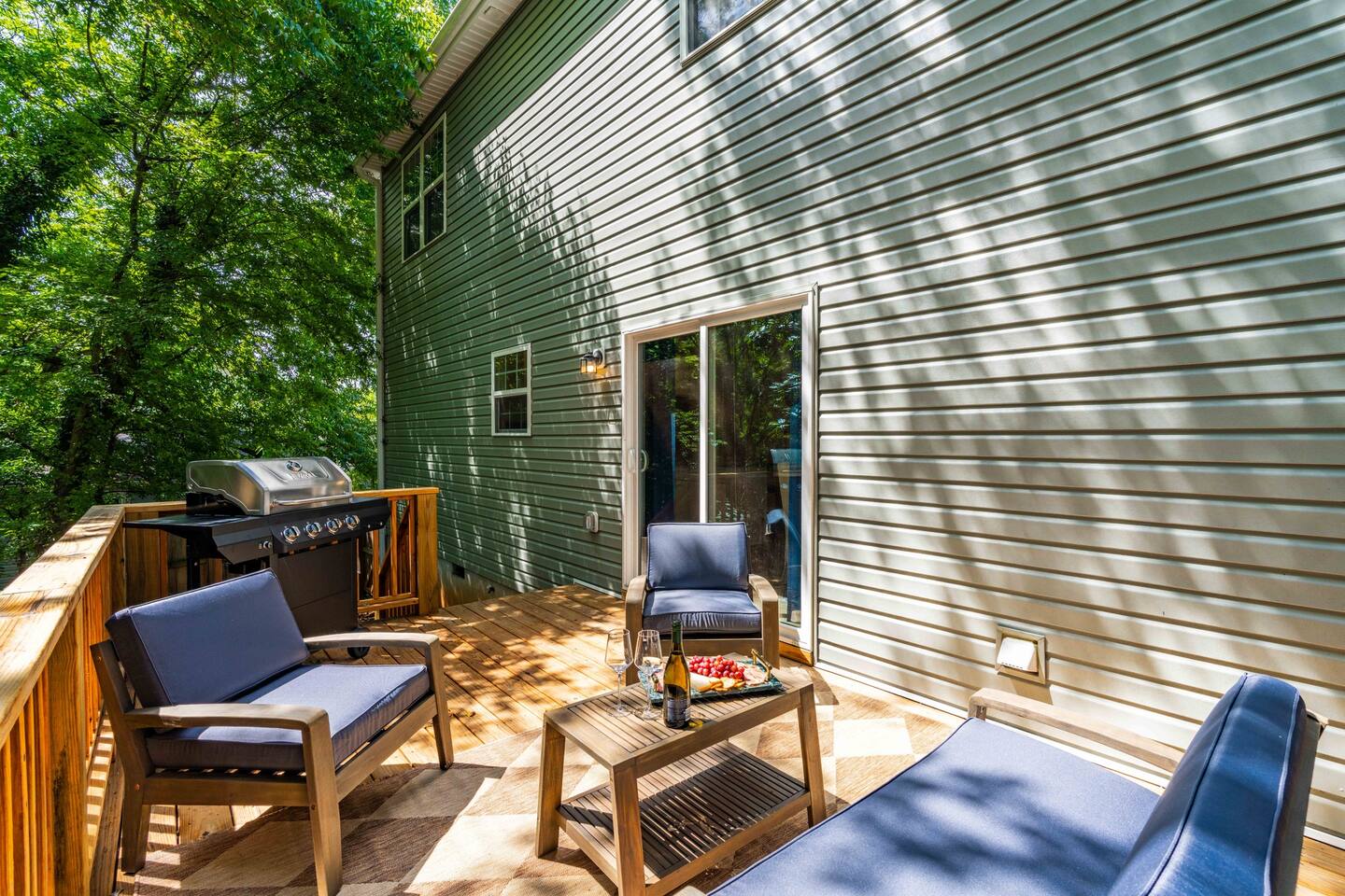 Welcome to The Rock House Retreat — a bright, modern 5-bedroom, 3.5-bath luxury home offering space, style, and comfort just minutes from Duke University, DPAC, and the Ninth Street District. Perfect for families, traveling professionals, or groups visiting Durham for work, sports, or leisure. Enjoy an open-concept living area with a leather sectional, large Smart TV, and plenty of natural light. The fully equipped chef’s kitchen features stainless steel appliances and an island w/ bar seating.